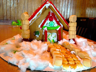 We cracked the candy cane heads off and used the straight part of the cane to outline the house. I am shocked they stayed on - they were heavy!